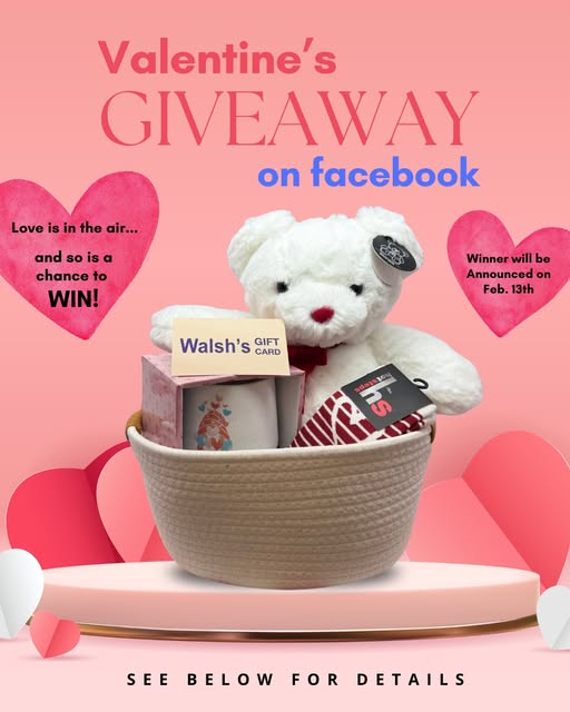 We're giving away a Walsh's Gift to Go Basket to help make your Valentine's a little sweeter! 💖